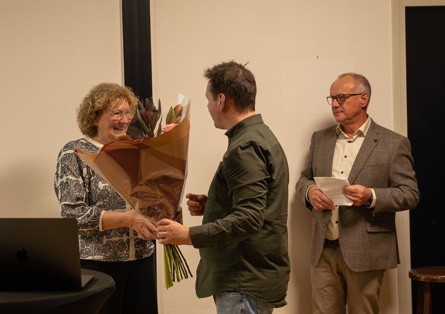 De avond kende ook een bijzonder afscheid van penningmeester Marja Lips, die na maar liefst 28 jaar bestuurslidmaatschap – waarvan 27 als penningmeester – haar functie neerlegt. Zij werd uitgebreid bedankt voor haar uitzonderlijke inzet, betrokkenheid en jarenlange steunpilaar binnen de vereniging. Met de nodige mooie woorden van de voorzitter, bloemen en een passend cadeau, toonde Marja zich zeer vereerd met de warme woorden en waardering.